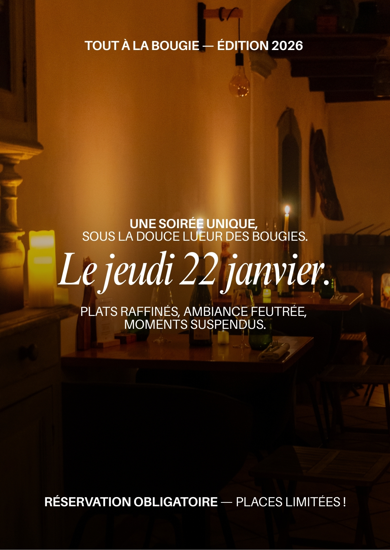 Une cuisine faite maison, généreuse et conviviale, qui célèbre la simplicité, la qualité et l’art du partage — comme une soirée au coin du feu.