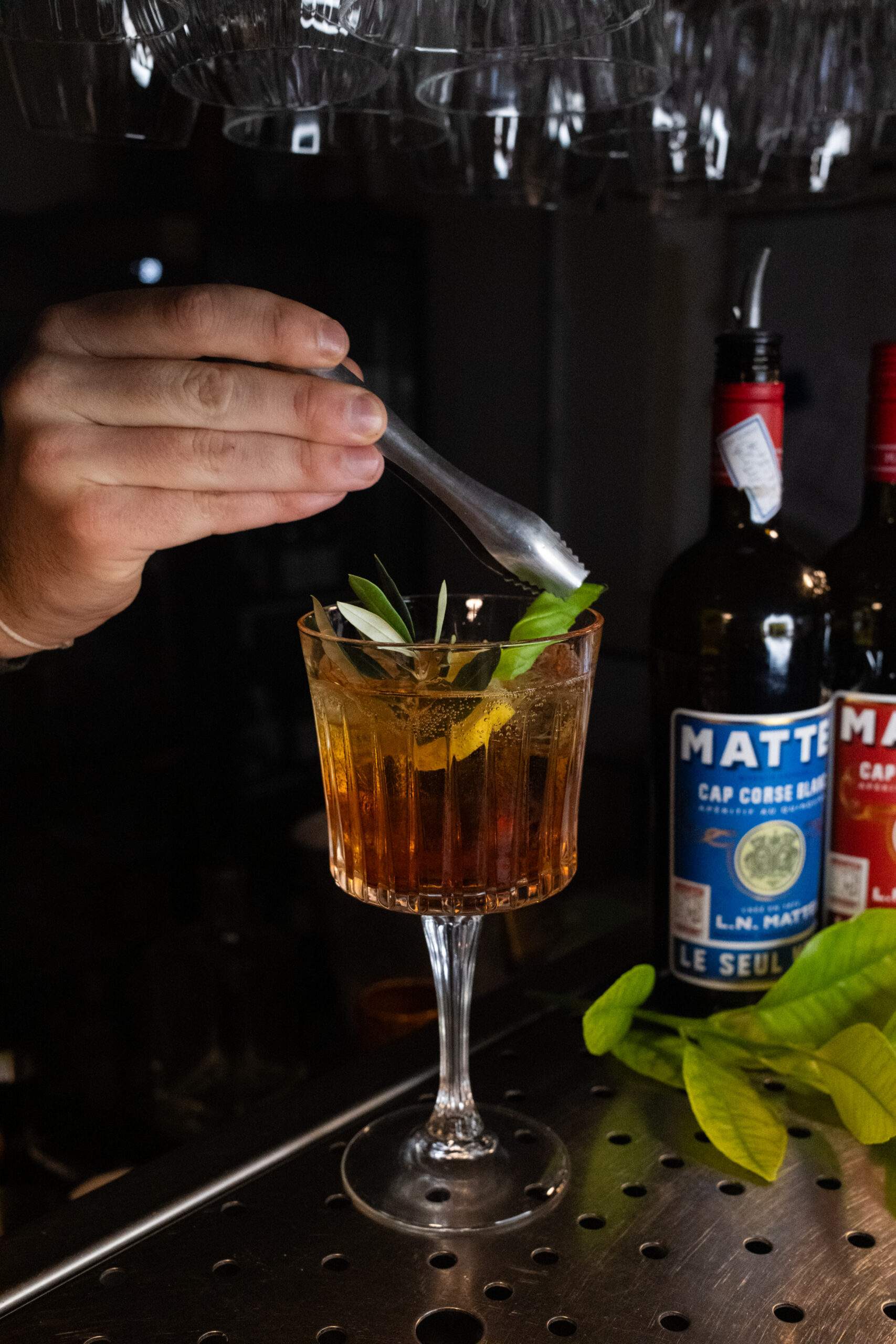 13Cap Corse Mattei blanc et rouge, gin corse U Massicciu, eau gazeuse.